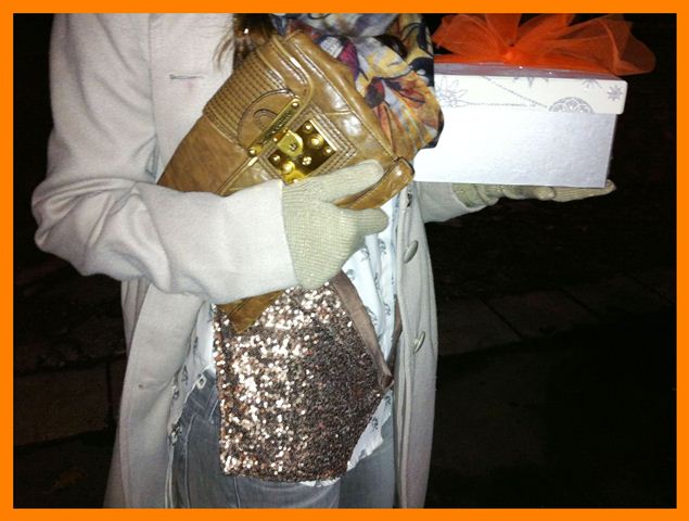 coat: Peacocks, scarf: New Yorker, gloves: Six, jeans: Replay, boots: unknown from Paris, blouse: Zara, wastecoat - unknown (borrowed), bag: Juicy couture (borrowed), earings: Accessorize, phone: Blackberry, lips: Bourjois